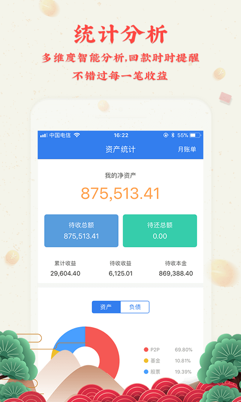 --自动精算各种还款方式的年化收益,多种分类账单数据具象化;