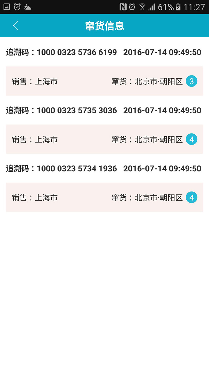 稽查APP是针对稽查机关和企业稽查部门而开发的一款辅助类软件。主要用于产品信息的追溯查询,通过独特算法的追溯码和4位验证码设计,有助于稽查人员在稽查过程中快速,准确判断和掌握产品的相关信息。使用步骤如下:1. 通过输入组织机构代码,设备ID(注册手机号)和密码(默认为0000),登录即可。2. 地域查询:通过扫描或者手动输入追溯码,验证查询此追溯码相关图片和数据信息。同时可以查询上下级信息,也可以提交串货信息到服务器。3. 串货信息:可以查询此组织机构ID下所有追溯码的销售和串货信息,同时也可以单选或者多选中,进行处理。长按某一个组织机构ID,也可以查看它详情等等。4. 修改密码和检查更新为一些辅助功能模块。5.查询消费者的消费情况。