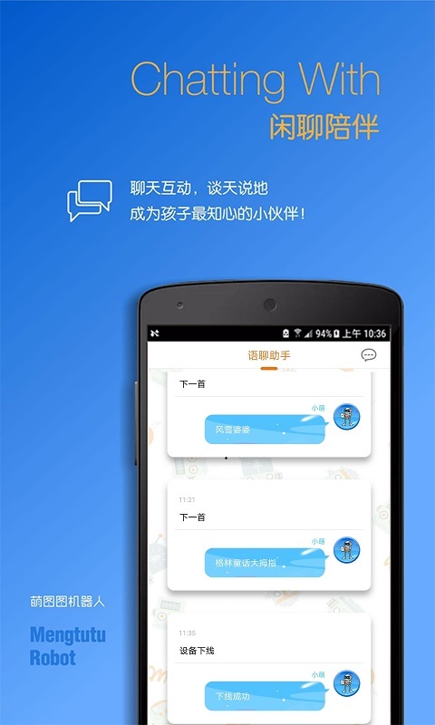 萌图图机器人是一款基于陪伴儿童成长,结合寓教于乐,趣味聊天等功能的智能陪伴机器人。在这里,可以找到为孩子精心准备的丰富功能: 1、内容丰富,保证让家长和孩子满意。 2、聊天功能,随时可以与孩子的设备进行互动。 3、绑定设备,获取更细致的服务体验。