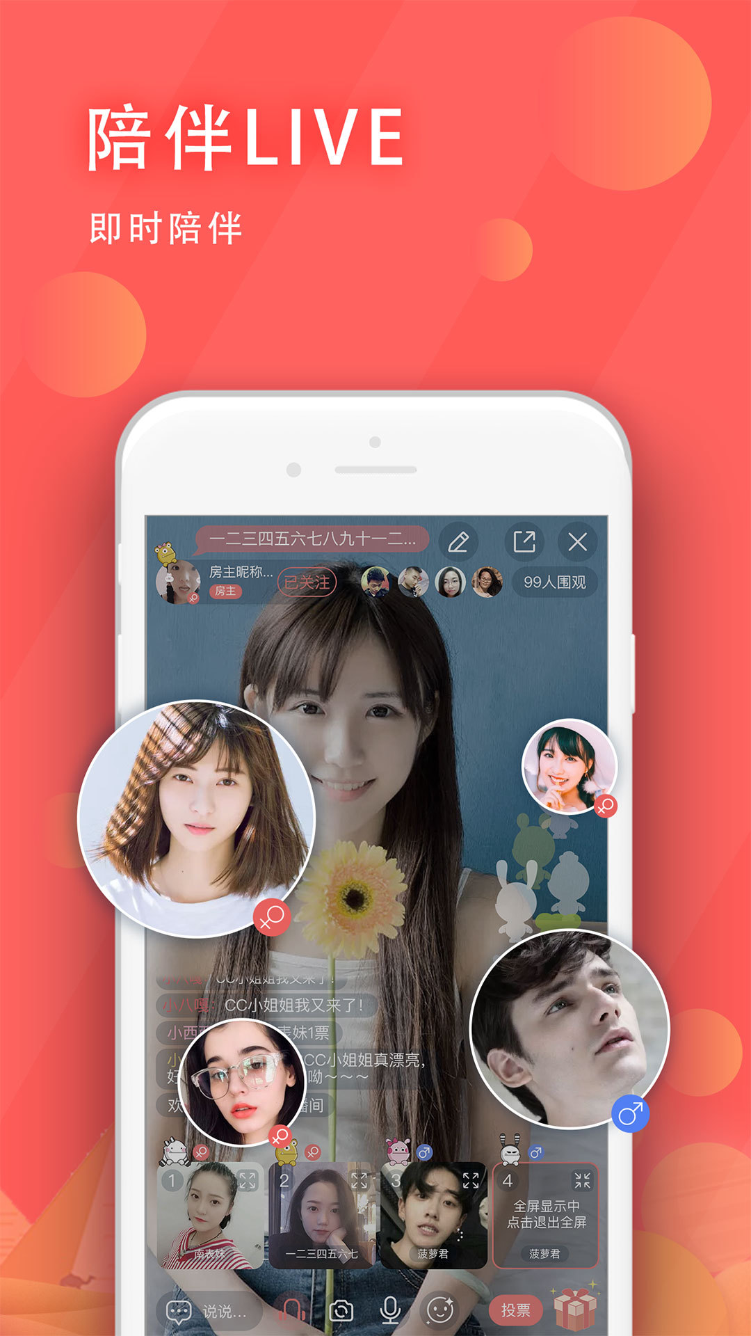 「十色谷」中“陪伴LIVE”提供了一个即时陪伴的空间,在这里,有许多有趣的小伙伴们,进行多人视频或语音群聊,有趣议题,走心不走肾。遇到有趣的灵魂,当然无话不谈!