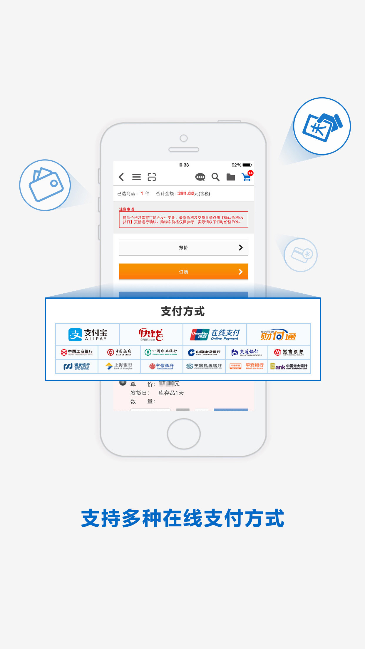 通过本购物APP进行的订购,顾客可使用银行线上转账功能或支付宝进行支付。