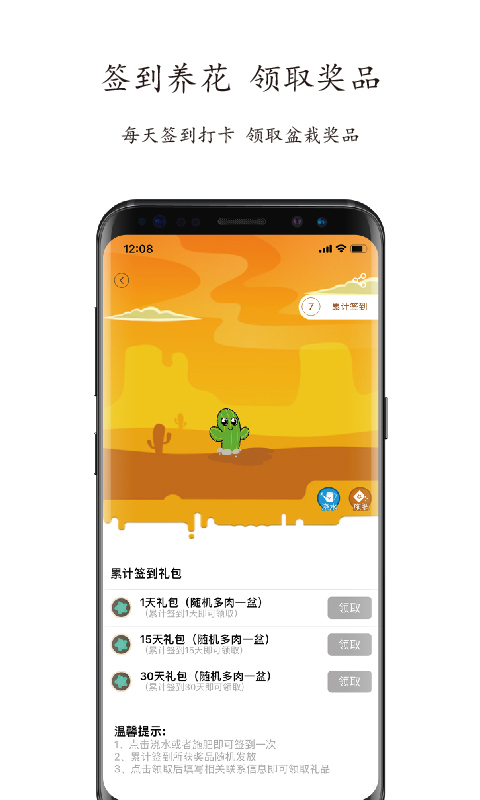 用户注册后浇水施肥盆栽即免费送盆栽三棵(坚持每日浇水还会长大哦)