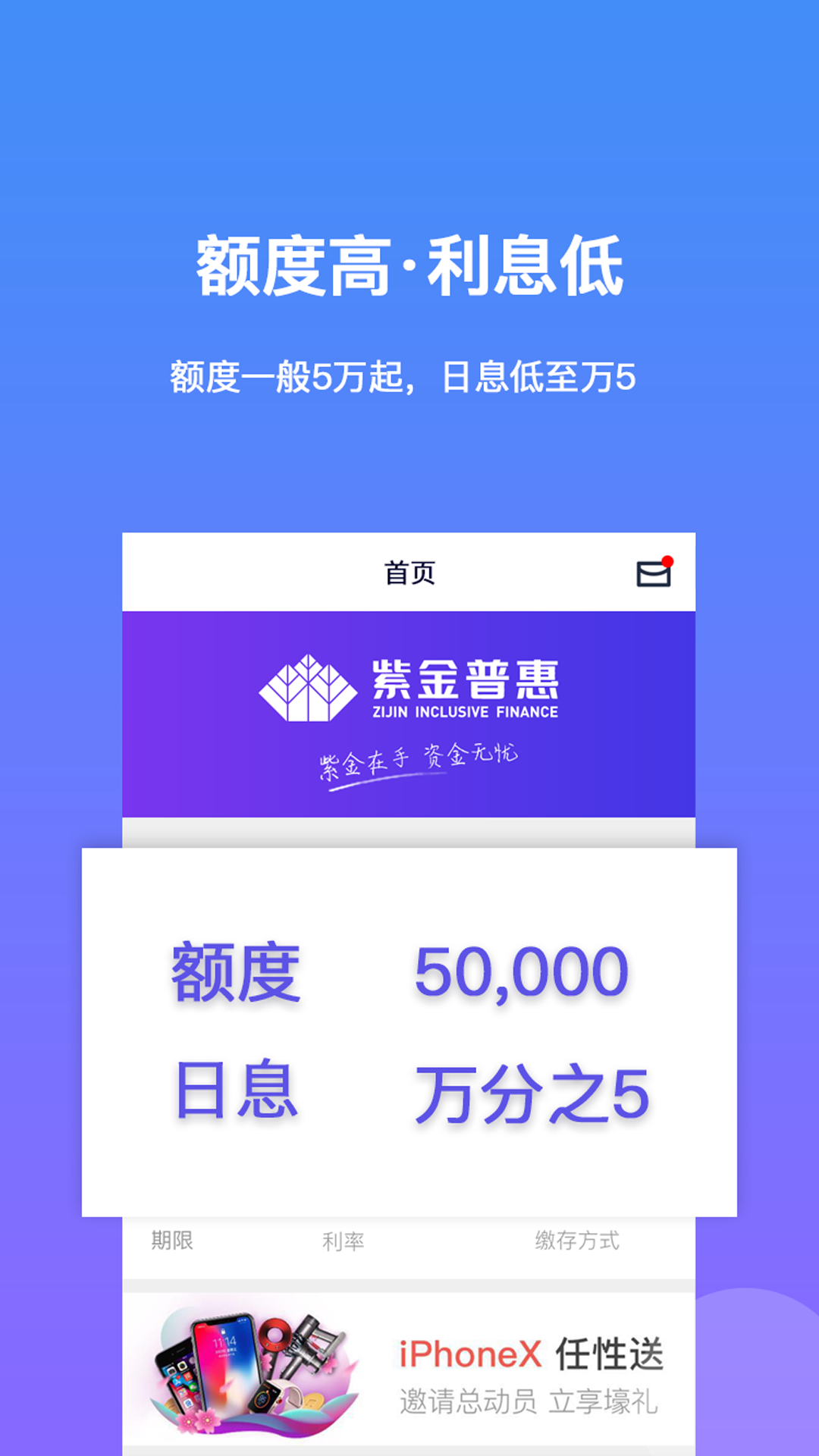 3. 额度高,利息低——额度一般5万起,日息低至万5