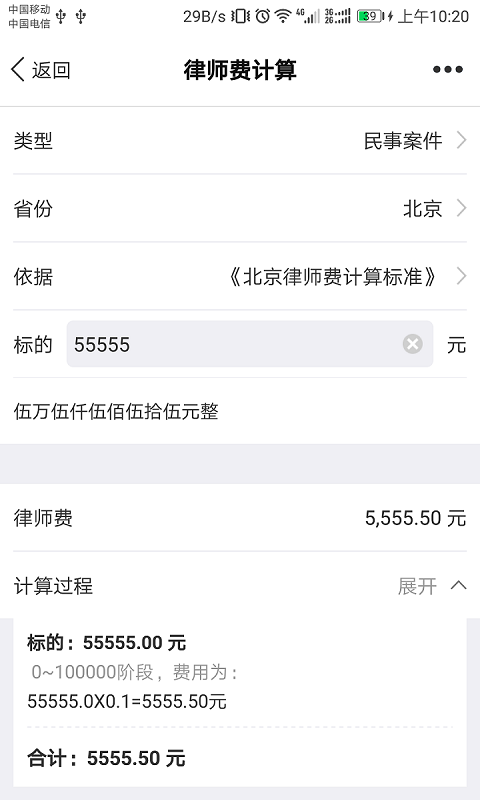 7.“律师费计算” 是用来计算一个按件的代理律师费用,供律师参考。
