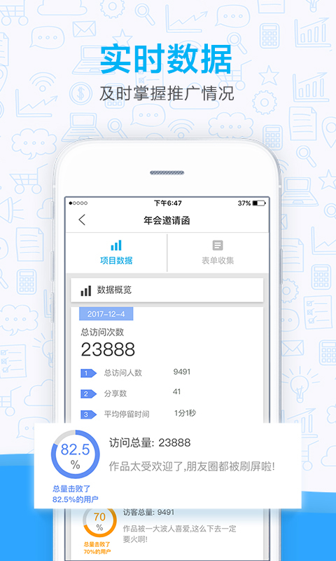 【全面数据监控】深入了解传播效果,MAKA提供详细的访问报告、受众群体特征、城市分布、访问设备型号等,用户能从数据中发现针对性问题并随时调整,实现更高效传播。