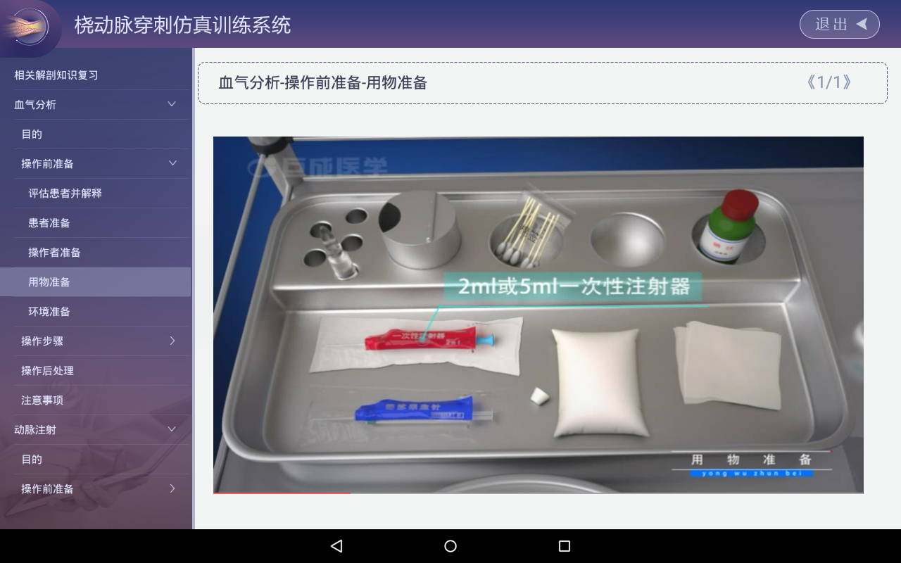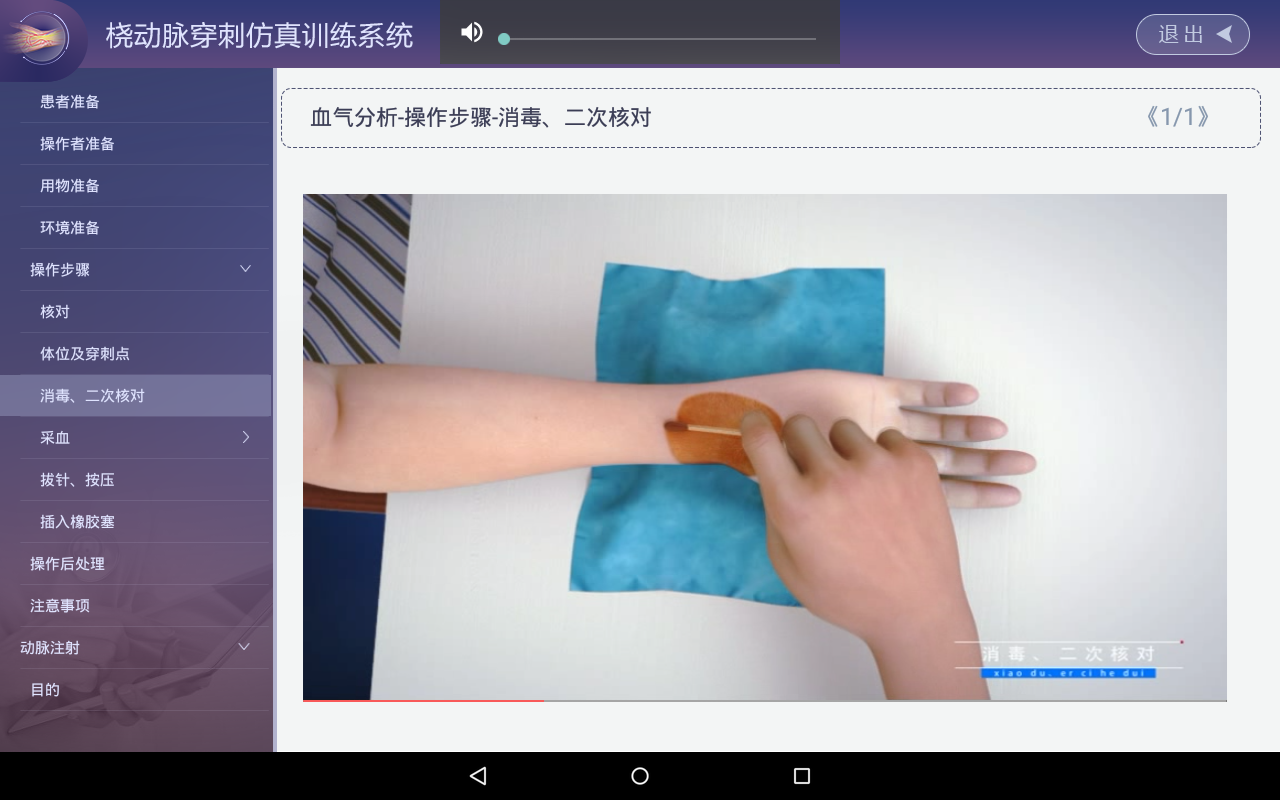 桡动脉穿刺仿真训练系统教学APP配合模型教学使用,便于用户学习和训练穿刺操作。 主要功能有:视频教学、图片展示等。
