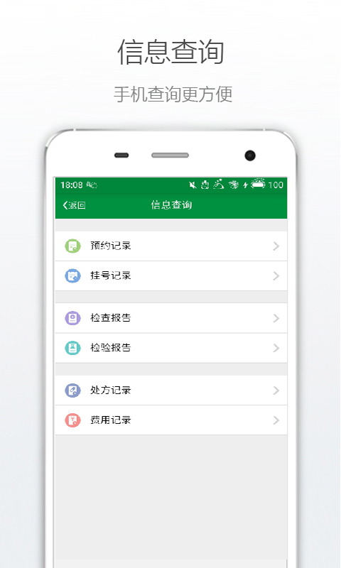 【信息查询】患者可以通过客户端查看检验检查报告、预约挂号记录、处方记录和费用记录,免去了用户往返医院带来的不便。
