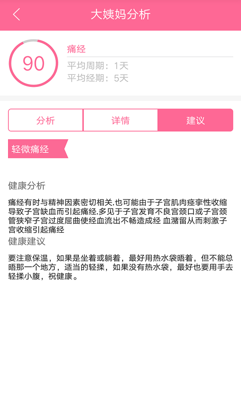 准确预测经期,记录特殊时期排量,以及痛经等强大功能,详细分析