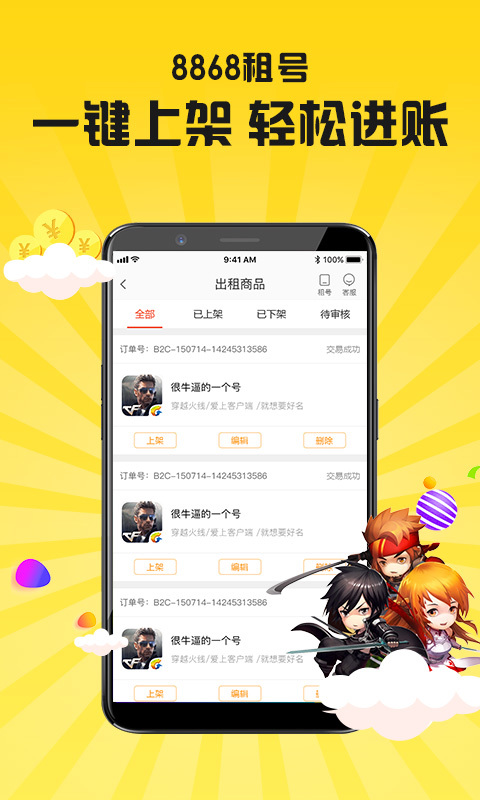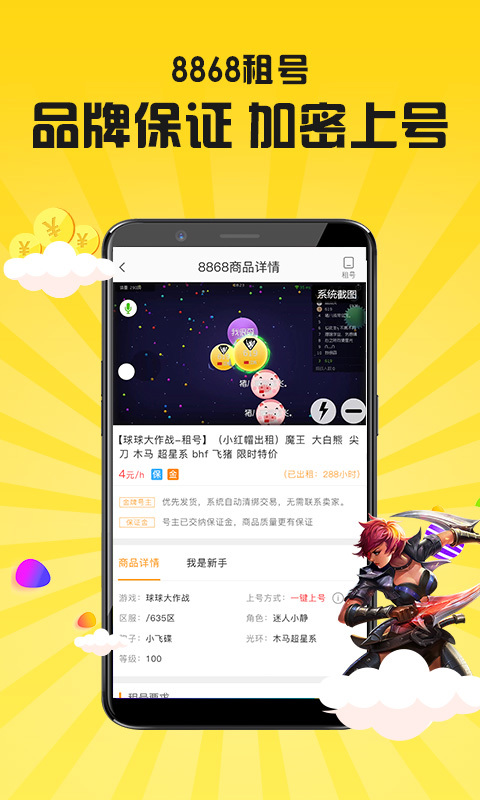 8868租号APP,是一个专业安全的手游、影视会员租号平台,为玩家提供时下热门优质游戏账号(穿越火线CF、绝地求生、QQ飞车,去吧皮卡丘等)和视频VIP优质账号(腾讯VIP、爱奇艺等)的租号服务。 只需花0.1元起的价格,即可立即体验优质VIP游戏账号。还在犹豫什么赶快上车,一起耍起来吧!