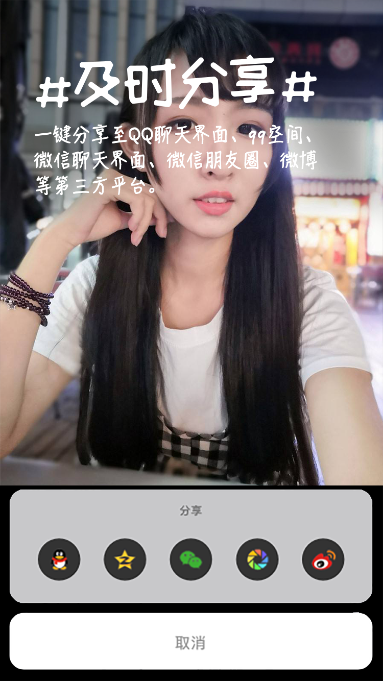 #及时分享# 一键分享至QQ聊天界面、qq空间、微信聊天界面、微信朋友圈、微博等第三方平台。