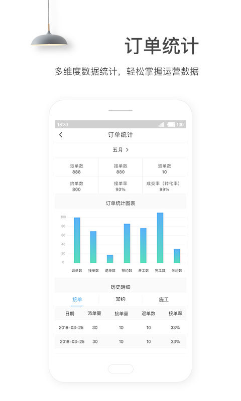 【数据管理】统筹订单、客户等核心数据,自动生成数据统计图,助力运营