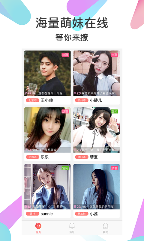 在探聊,开启零距离的一对一交友体验,让您迅速的认识心仪的萌妹,帅哥。