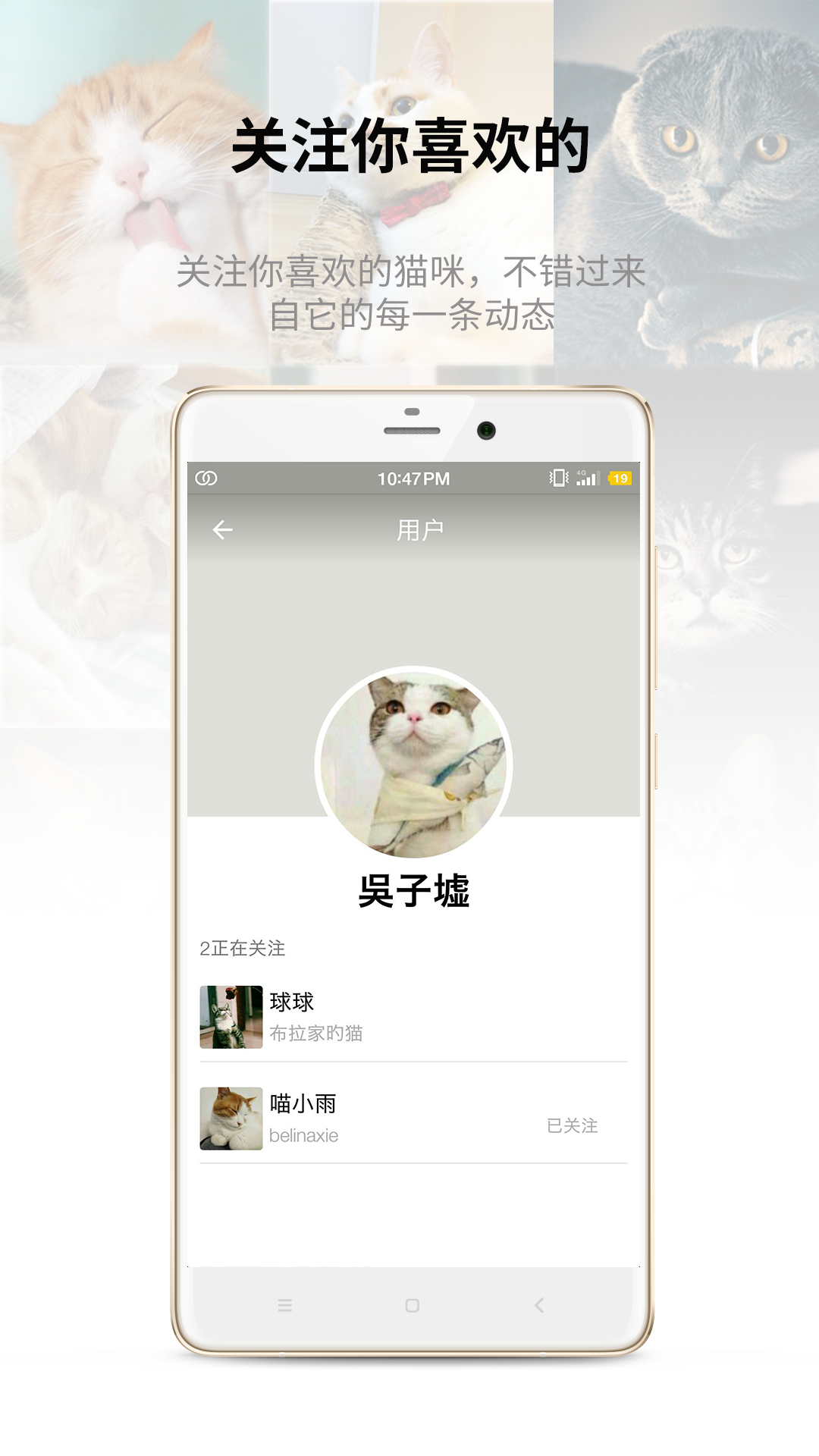 关注你喜欢的猫咪,不错过它的每一条动态。