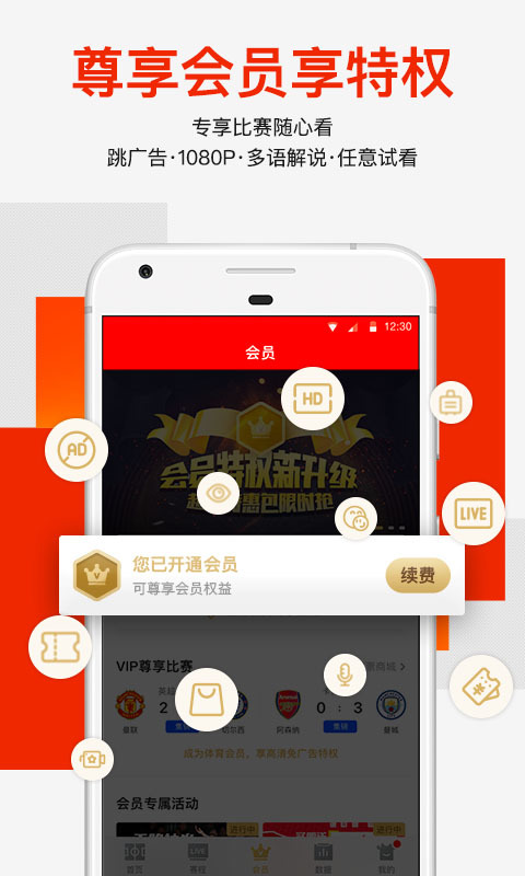 每月赠观赛券,可兑换英超、网球等付费比赛直播