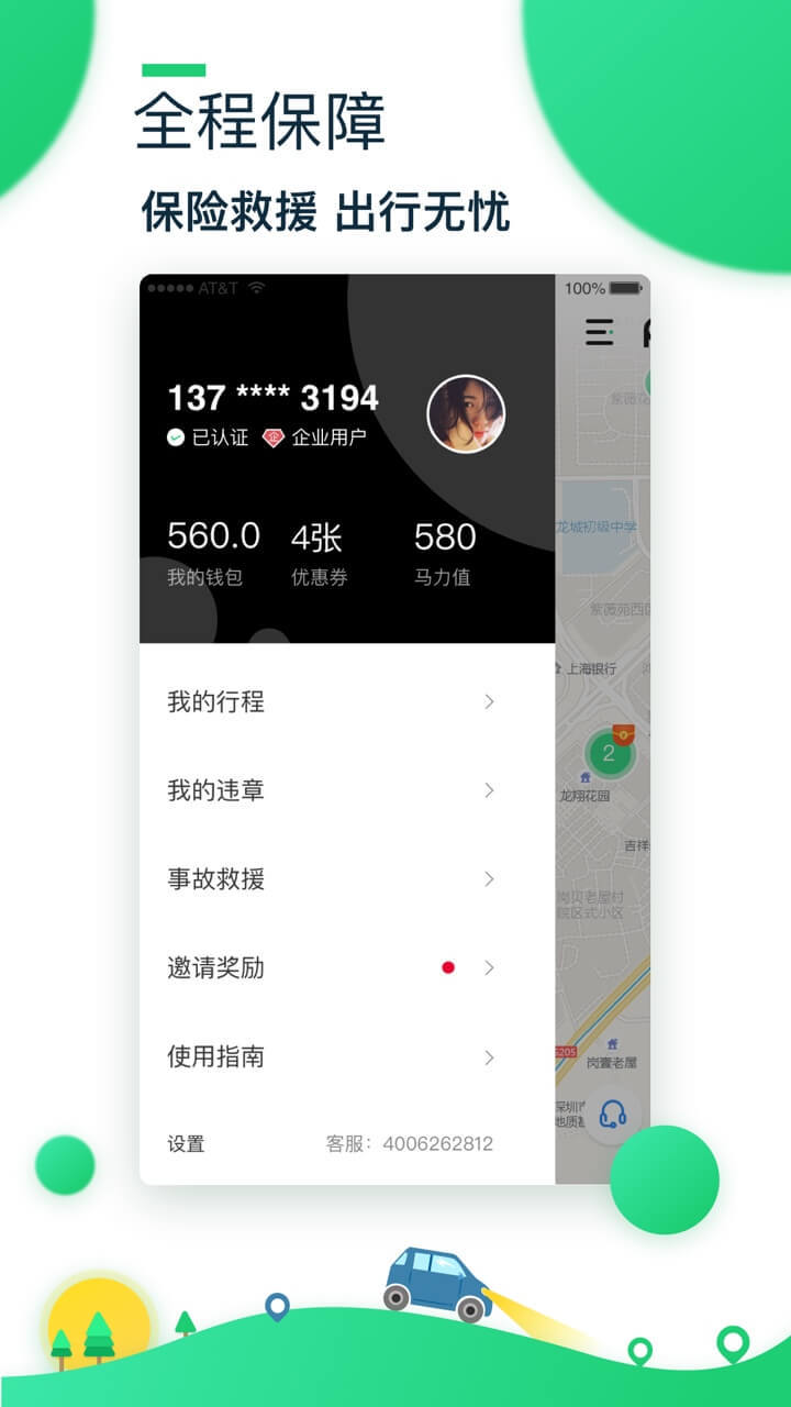 所有车辆均进行高频安全检察,并购买多重保险,平台提供24x7全天候服 务,安全有保障。