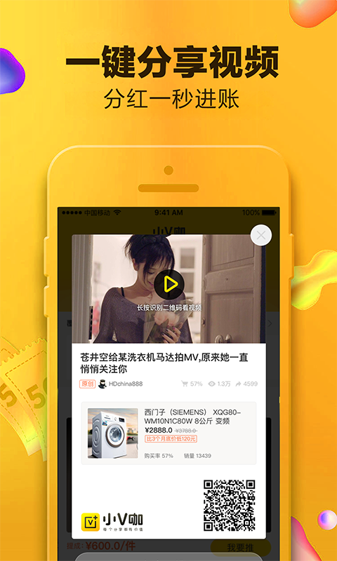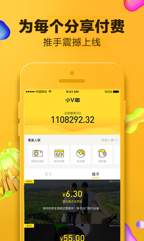 小V咖 - 超火爆的国民手赚APP,缔造了“分享&分红”模式,为每个分享付费。