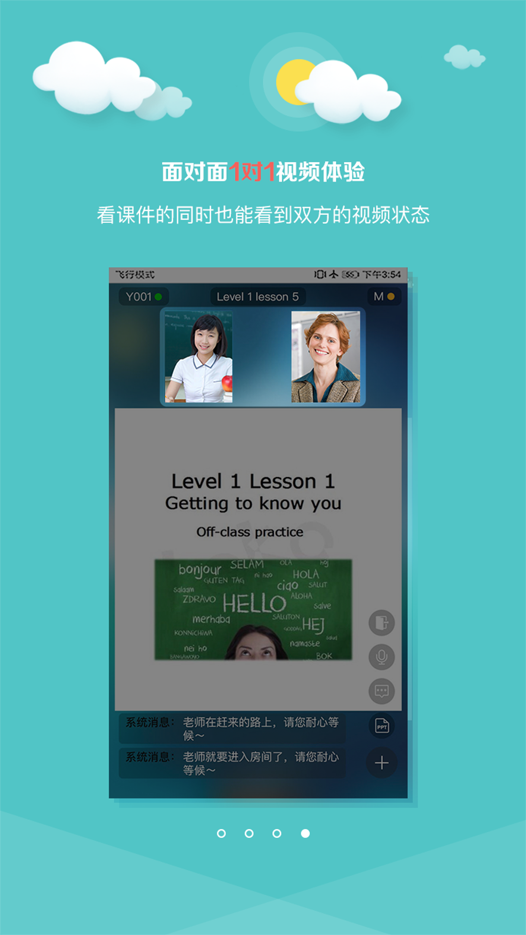 2、可与外教发文字,发图片,发表情,消息互动;