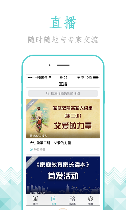 2、直播:海量家庭教育名家讲座,方便家长随时随地学习。