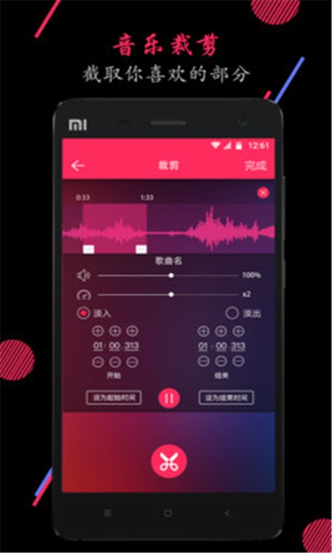 - 支持同一音乐剪切出多段音频,多种音频编辑模式