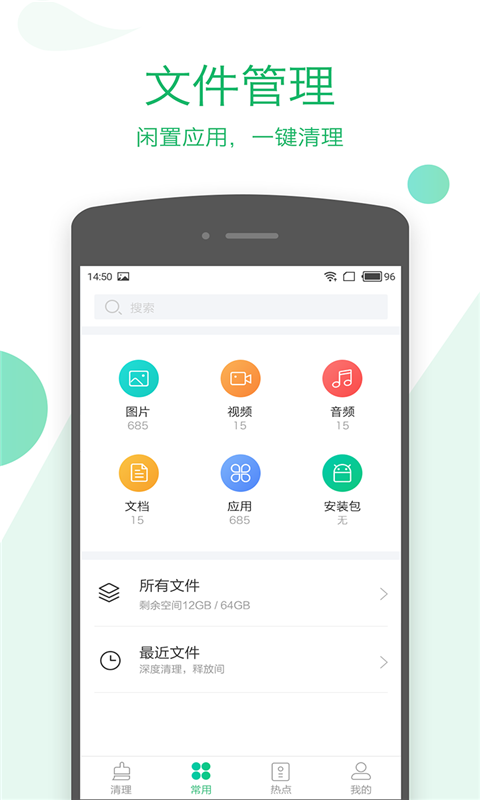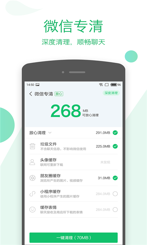 手机内存清理是一款专注安卓用户的专业手机清理软件,独有的垃圾文件扫描引擎,垃圾清理更快速,清理效果优于同行30%,有效解决手机使用过程中的一切卡顿、耗电、内存不足等问题,是你的贴心手机管家。