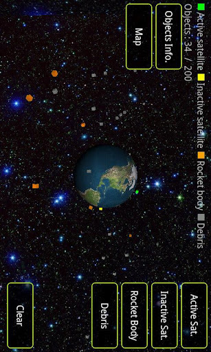 卫星 3D应用展示围绕地球的卫星,火箭和太空垃圾(碎片)trideminsionally。 您可以搜索卫星激活,灭活卫星,火箭,太空垃圾(杂物)。 您可以检查如何改变对象的轨道(卫星,火箭,太空垃圾)。 [功能] *放大/缩小,旋转是可能的*您可以搜索启动卫星,卫星灭活。*您可以搜索火箭*您可以搜索太空垃圾(杂物)*你可以检查你有兴趣的对象,在轨道上。 #*可以显示此应用程序的对象是200名。