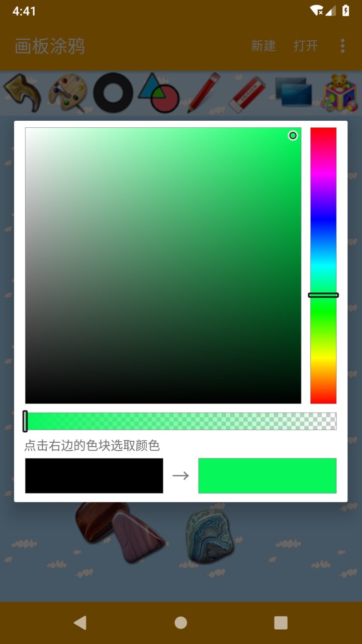 可以在手机或平板大屏幕上随意涂鸦,自由发挥,应用提供了大量背景图片,增加创造的灵感,画笔的粗细颜色形状都可调节,还有很多贴纸可以粘贴在画板上,保存功能可以让你的作品以图片的形式保存在SD卡里,打开功能可以继续完成上次的杰作。