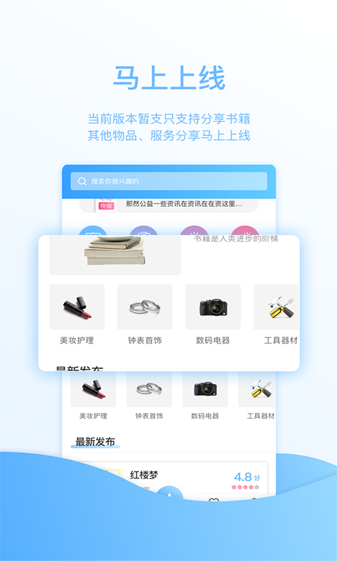 开发的过程漫长又艰辛,目前的版本已率先支持分享书籍功能。对于其他物品、服务、技能的分享已经开发中,很快会和大家见面。