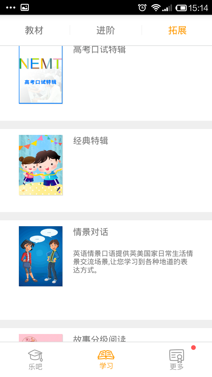 乐英语采用世界先进的剑桥大学语音识别技术,吸纳当前广为用户接受的在线学习软件交互模式与学习理念,设计而成的一款专注为中小学生提供英语口语学习的智能交互软件。其宗旨是为中小学生提供一个寓教于乐、每日可自主大声说英语的口语互动学习、训练平台。课件内容与学校教学进度相辅相成,将英语学习最重要的目标——"流畅说英语"变为可能!