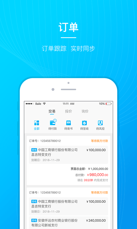 汇票栈APP由票据询价撮合系统与电子票据交易系统两大核心模块构成。票据询价撮合模块拥有海量的信息匹配能力,致力于帮助持票贴现企业获取优质贴现渠道,同时让收票机构高效率低成本的获取准确客户解决市场信息匮乏、信息不对称等问题。电子票据交易模块是汇票栈联合银行、第三方支付机构针对电子商业汇票流通而研发的一款票据线交易系统,保障交易双方的票据和资金安全。