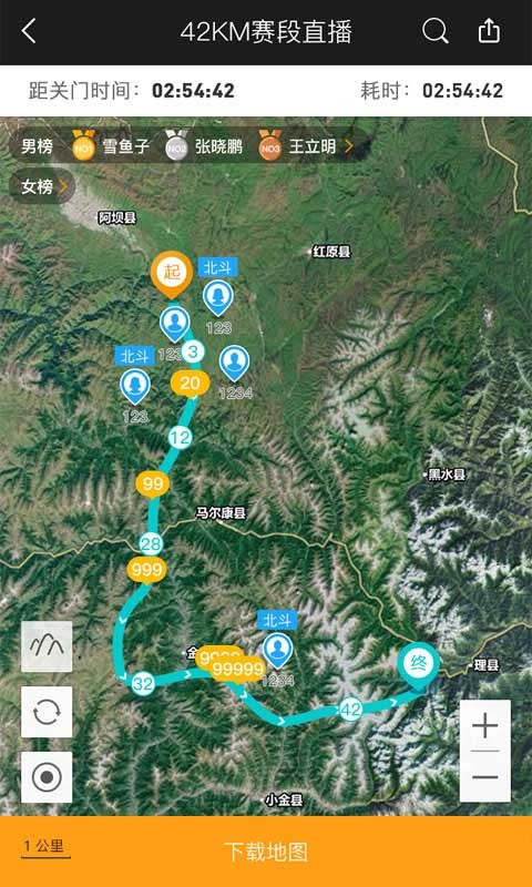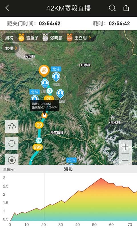 赛中:同步直播并记录选手的行动轨迹,海拔高度和成绩排名等。