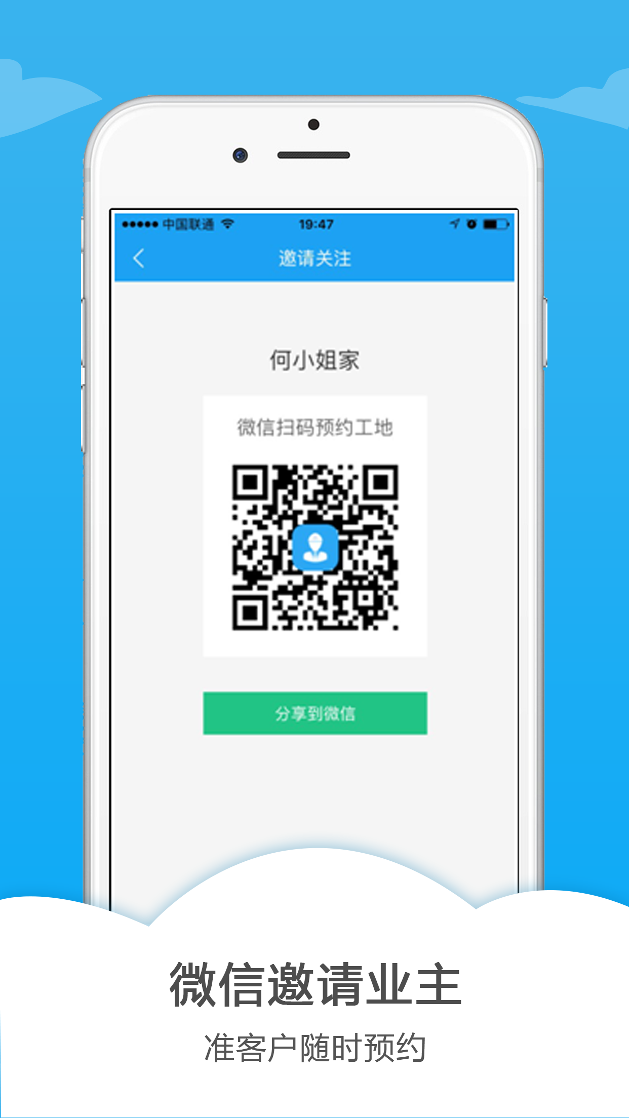 工地进展实时记录,邀请关注,扫码分享,口碑传播