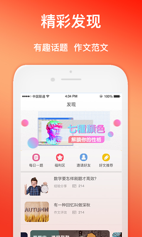 5.精彩发现:每日练题,作文评改,话题吐槽,精彩等你!