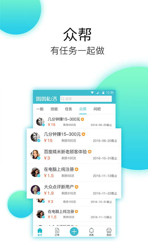 啦啦私活 APP —赚外快助手!通过提供及时可靠的私活任务信息,让职场人士可以利用经验和专业技能兼职赚钱