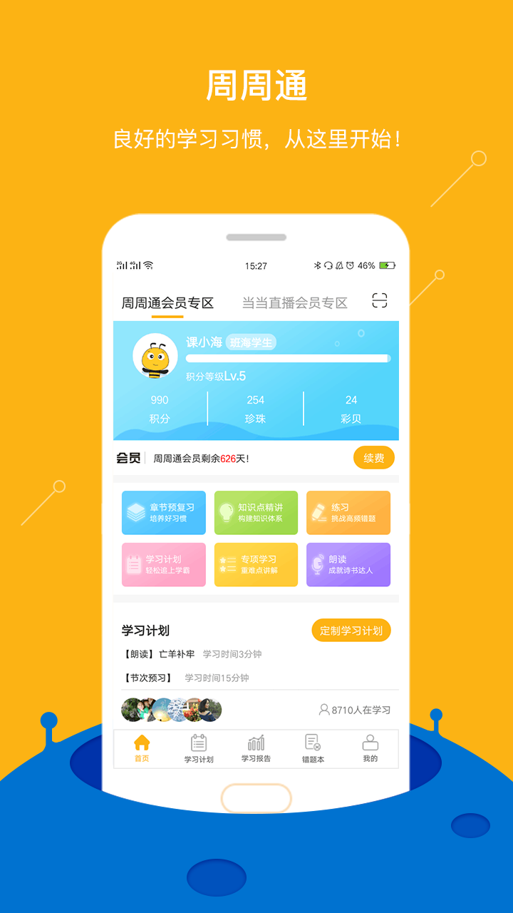 涵盖当周问题、搜讲解、预约周周、短板错题、学知识五个学习模块。