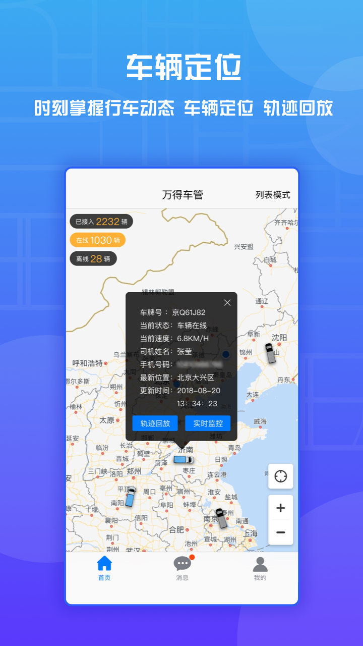 万得车管app是针对物流车、通勤车、网约车等,为企业提供车辆定位、实时监控、事件预警、车辆调度、车务管理等一站式服务。可提供: