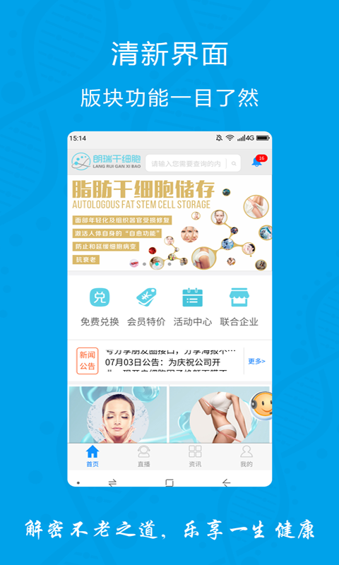 “解密不老之道,共创美丽、健康与财富”--朗瑞+朗博医疗抗衰老中心+四川省干细胞库实现三位一体化产业联盟,秉承从分享到共享的运营理念,为关注健康和美丽的您打造从消费--优惠--钜惠--收益的共享环境。一起来,加入朗瑞干细胞产业推广,实现个人美丽、健康与财富的大丰收…