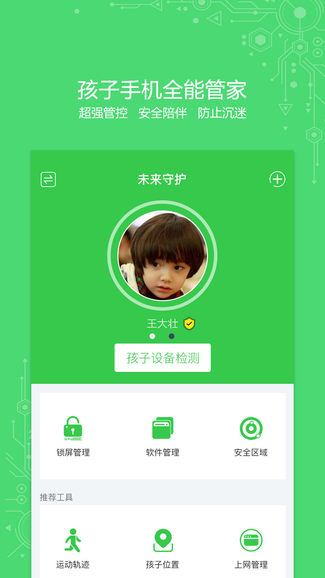 奇未守护是一款远程管理应用,家长可实现对孩子移动端应用以及孩子位置的实时查看与管理,并在孩子离开设置好的区域后能够及时通知家长,以便家长立即做出反应。