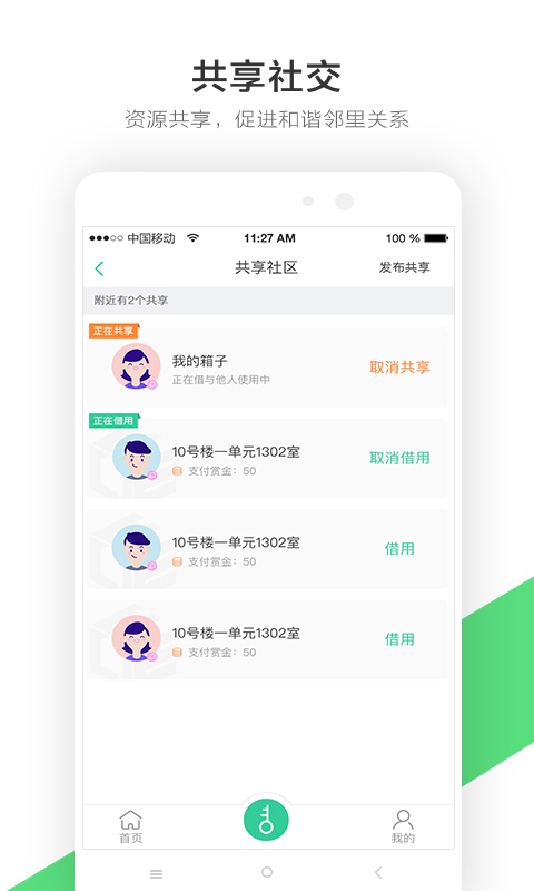 3、来福魔方硬件可通过APP共享给附近邻居使用,用户可赚取一定的积分;