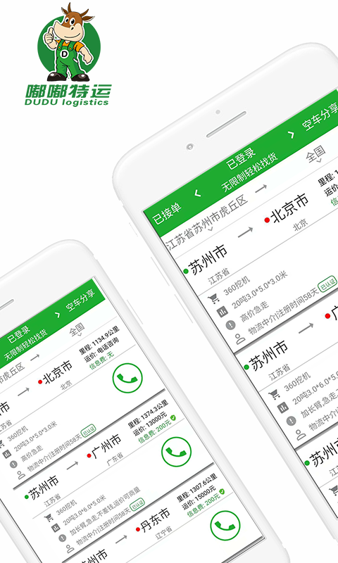 嘟嘟一响,黄金万两,依托互联网技术,让司机高效配货,让货方轻松发货。精耕特种运输市场,实现以工程机械和重型设备为代表的特种货物与专业运输车辆之间的智能匹配。