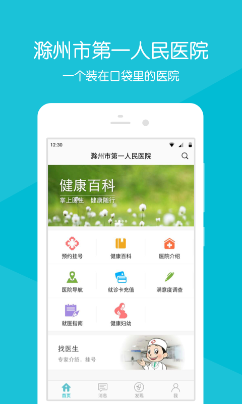 滁州市第 一人民医院APP是杭州恒生芸泰网络科技有限公司为滁州市第 一人民医院定制开发的智慧医院手机客户端。为用户提供预约挂号、找医生、就诊卡充值、健康孕妈等服务,让患者可以直接通过手机预约挂号,免去排队困扰,享受更全面、更优质、更高效的医疗服务,是滁州市第 一人民医院的官方APP。