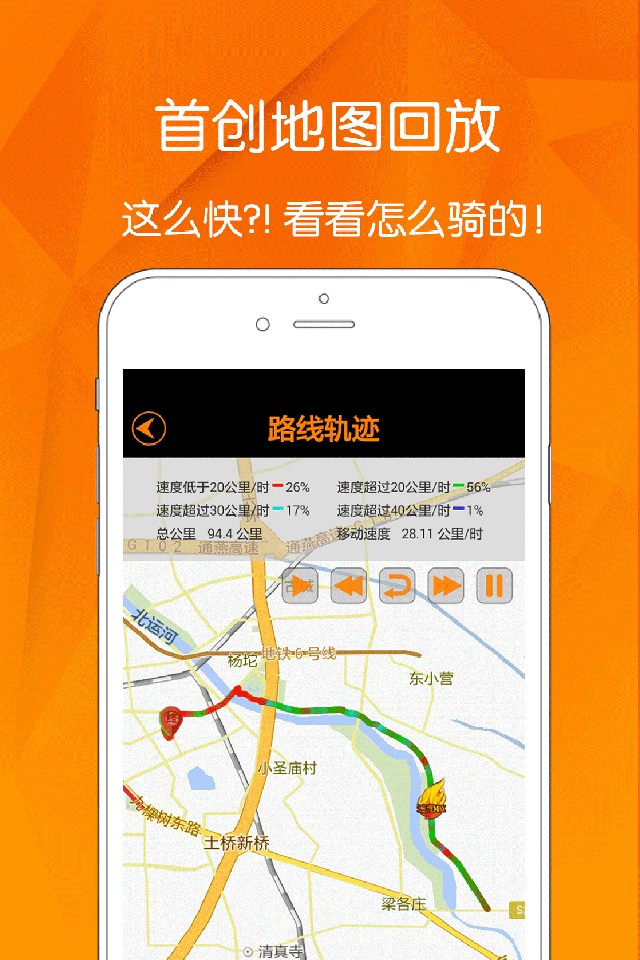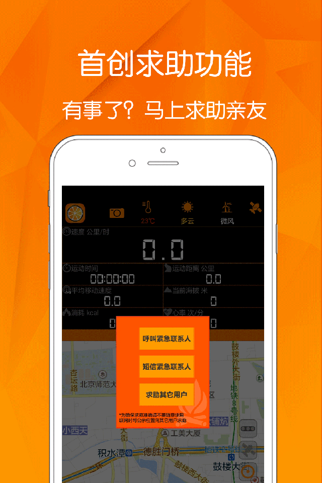 应用从骑友切身需求出发包括如下功能:骑行路线自动规化——怎么去一点便知、首创求助功能——有事了马上求助亲友、首创地图回放功能——骑这么快?看看怎么骑!