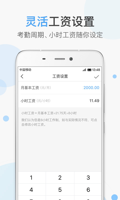 -支持录入月基本工资金额,并据此自动计算对应的小时工资