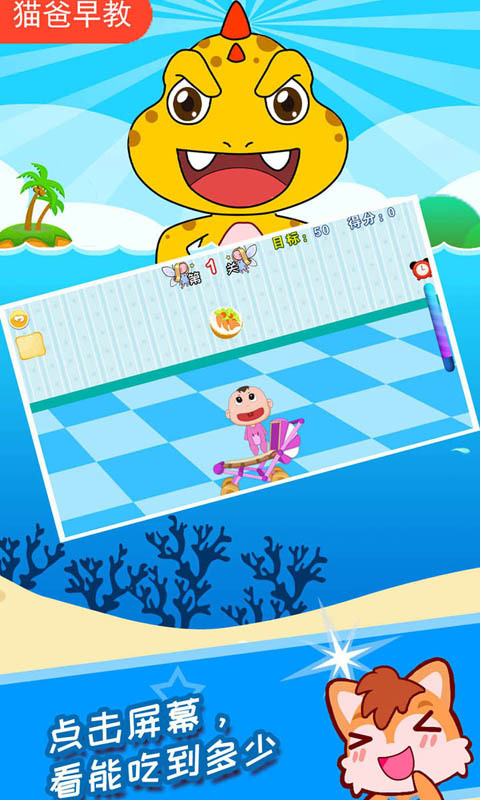 经典有趣的游戏:食物从左边飞向右边,点击屏幕宝宝就会从婴儿床上跳起来,碰到食物就可以吃掉。注意,要避开炸弹哦!随着关卡的增多,食物和宝宝移动速度会越来越快。锻炼孩子的智力和手指灵活度,快来挑战吧!