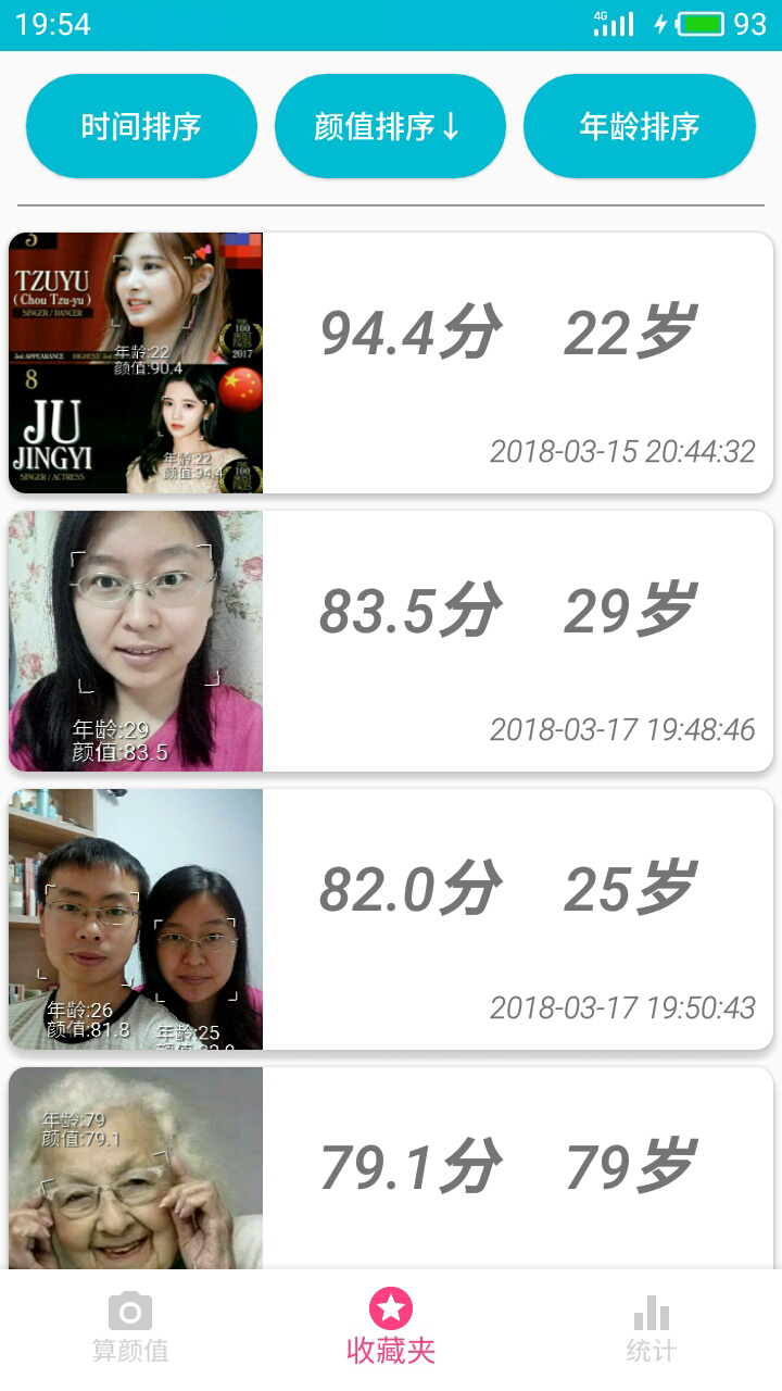 4、您可以将心仪的照片保存到收藏夹中,对收藏夹中的照片按照年龄、颜值进行排序,找出颜值王。
