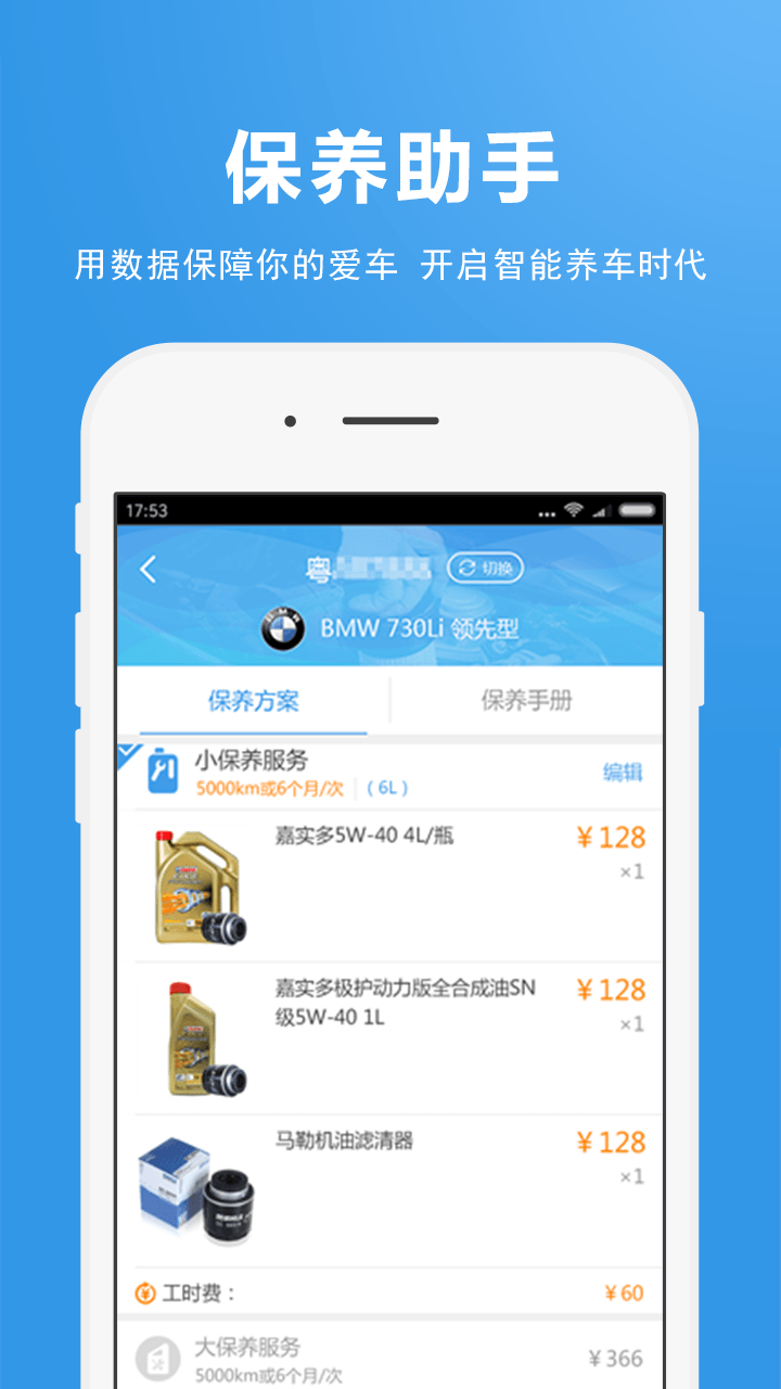 优质的保养体验:智能匹配大小保养及车型配件一键预约保养时间和门店, 放心省心