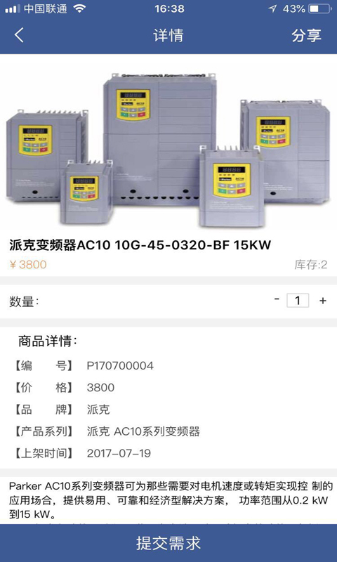 主要具有产品询价、产品交易、产品售后维修和检测、发布产品需求的功能,能够为工业行业采购、销售、工程师提供采购、销售、技术交流等信息交流和沟通。
