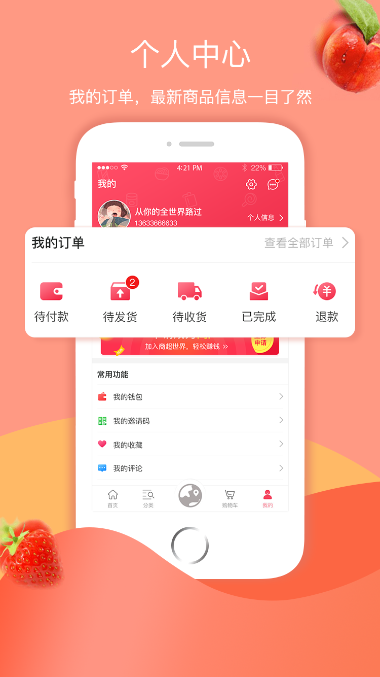 商超世界是郑州商超世界电子商务有限公司旗下专为手机用户推出的满足客户超市购物需求的软件,具有查看附近的商铺优惠信息、商品搜索、浏览、购买、支付、收藏、下单、配送、物流查询、沟通等在线功能,为广大用户提供便捷优惠的生活消费入口。