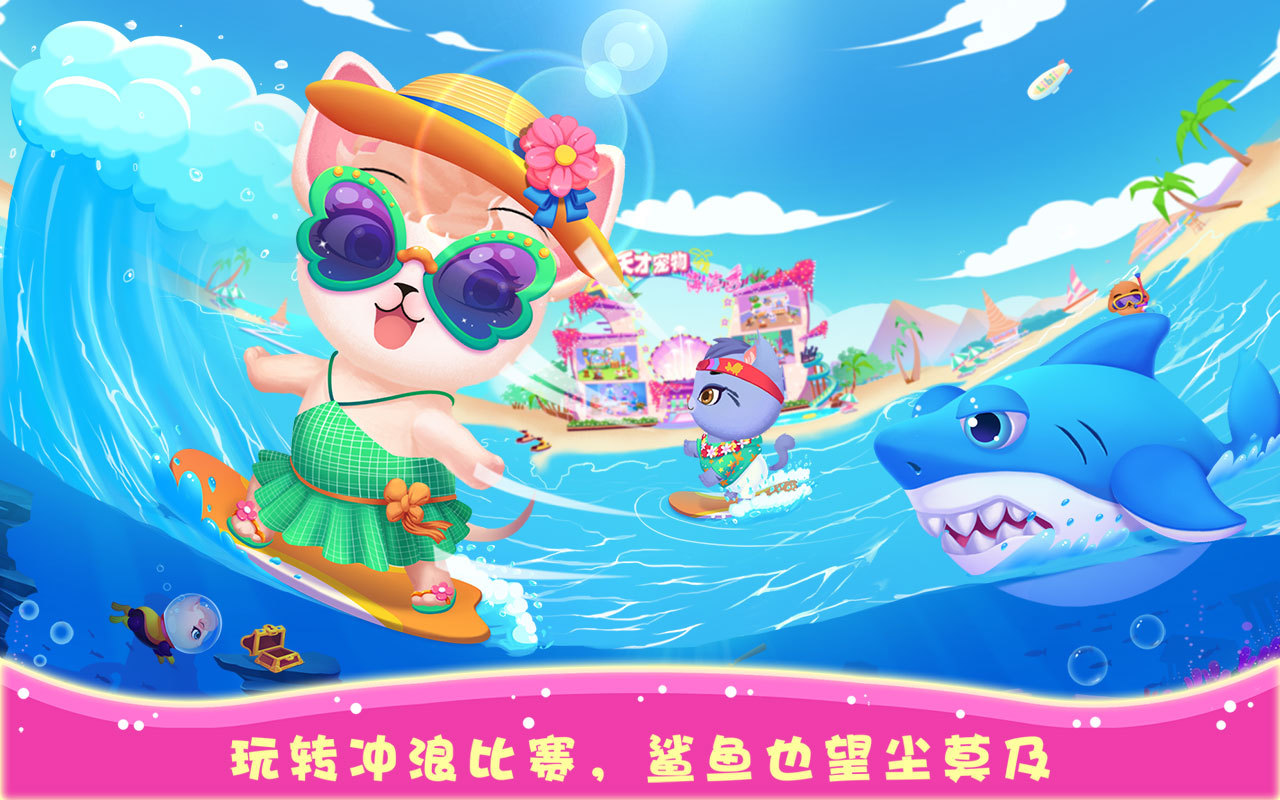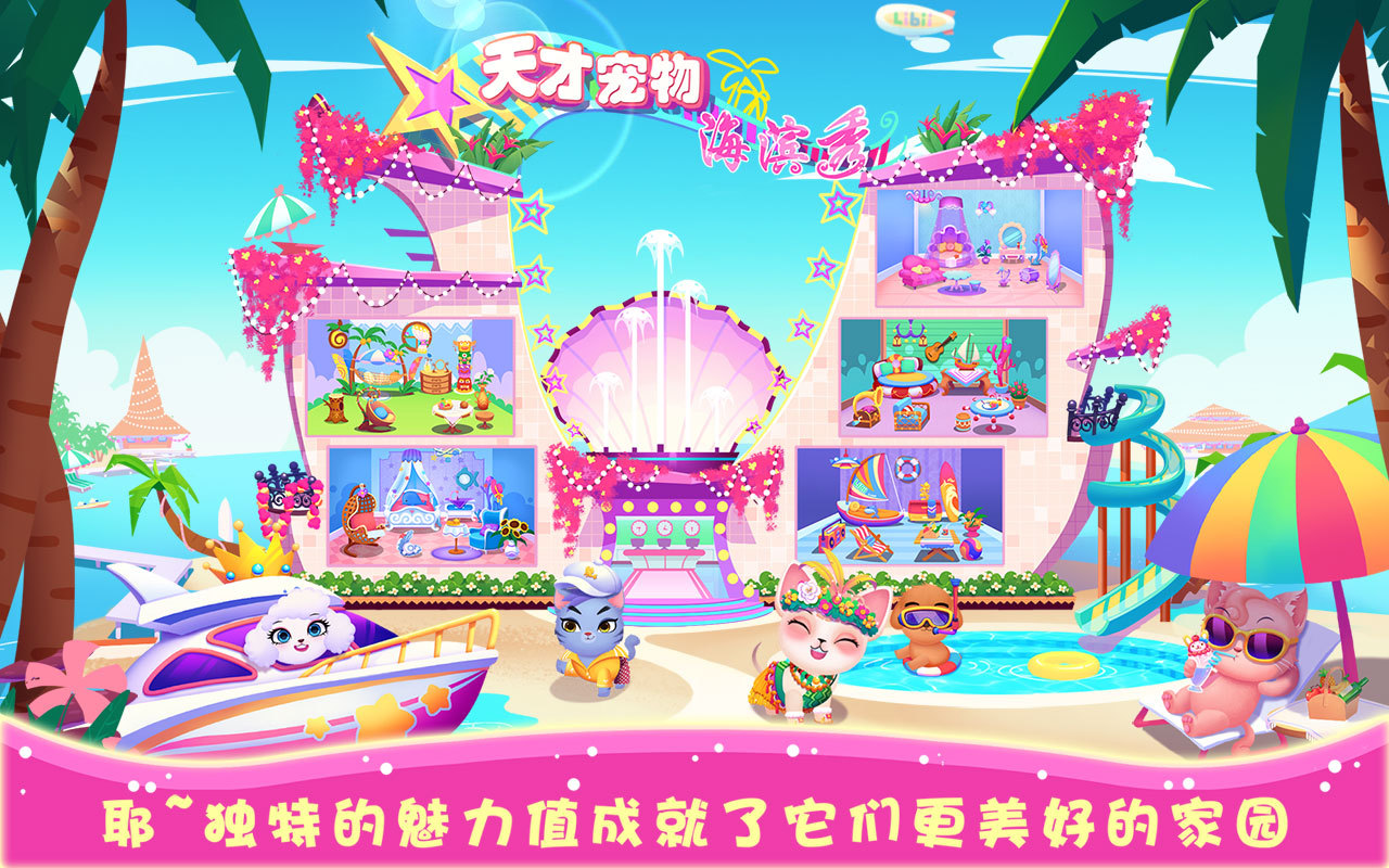 哈,你没看错,我们可爱的天才宠物们来到了一望无垠的大海边,在浪漫的沙滩上,一场“天才宠物海滨秀”即将上演。看呐~五只可爱的宠物都在海岛酒店上有一间自己的专属房屋,如何才能让它们的屋子变得更华丽呢?这当然需要宠物宝贝们自己争气喽!妆扮评选、拍摄海报、冲浪竞速、益智消除、海底寻宝、制作冷饮……每个比赛项目都值得宠物们好好把握。比赛成绩好,不仅可以使宠物人气爆棚,将房屋装扮的更加美丽,还可以为宠物自己赢取更多的漂亮服饰哦!还等什么,快快带领天才宠物们行动起来吧~