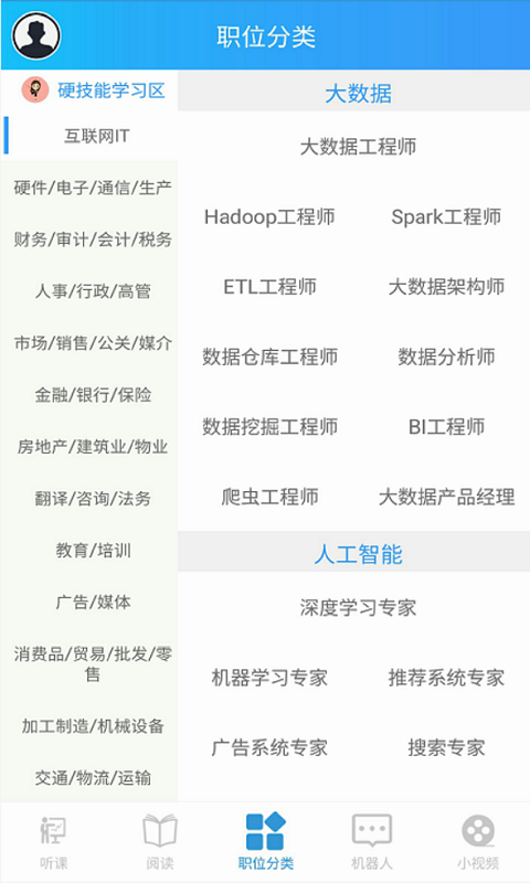 海量视频课程,覆盖所有行业、所有职位,通过不同行业职位的技能词偏好挖掘分析,智能推荐匹配你目前职位感兴趣的技能学习课程。