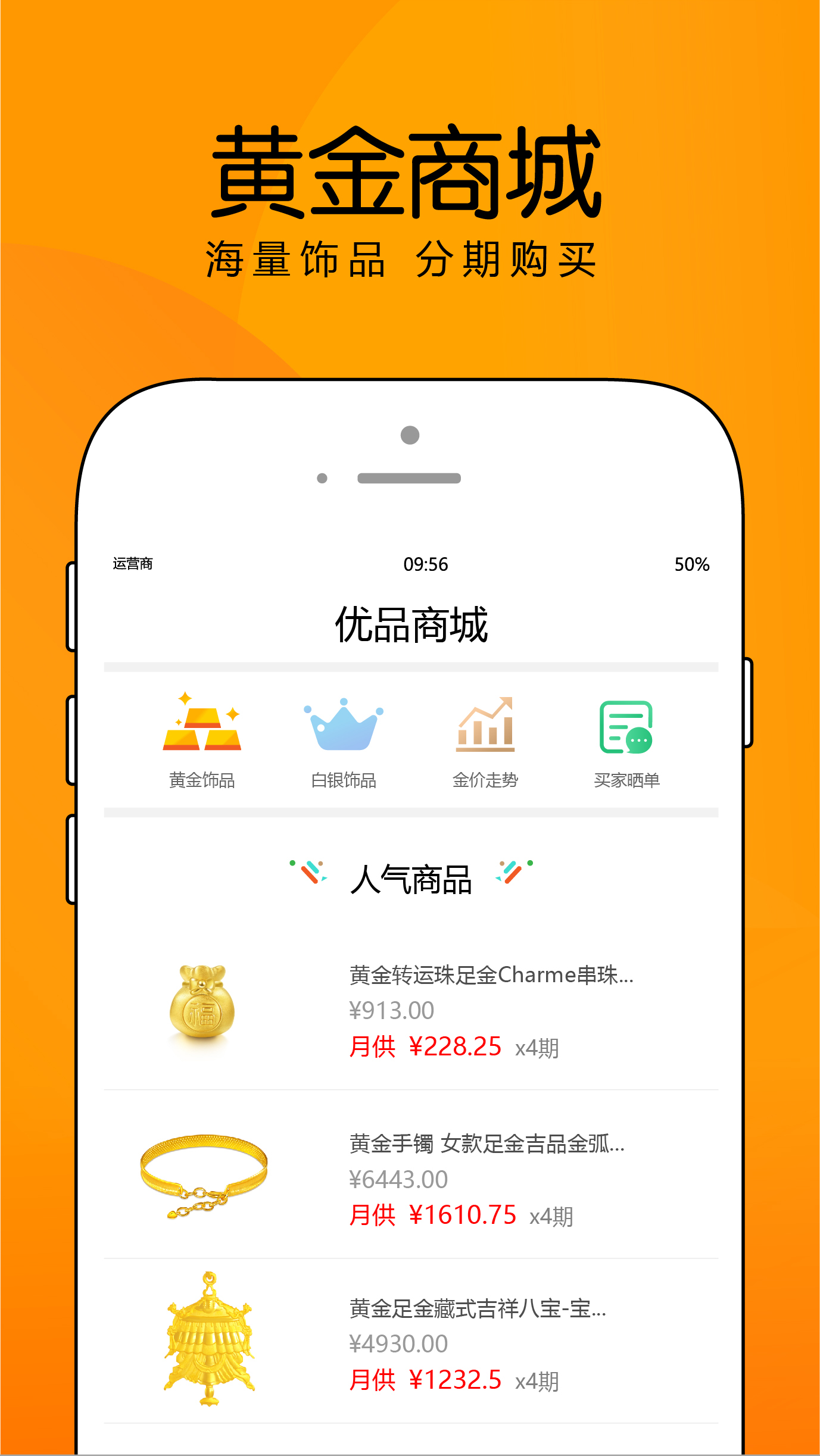 优品商城是基于移动互联网全流程线上网络分期购物应用APP,产品主要以黄金、白银为主。优品商城利用黄金供应链、大数据风控、云计算、等互联网创新技术进行风险控制和管理。依托严谨的风险控制规则及完备的技术支持体系,授信额度,额度循环可用,灵活分期。提供7*24小时线上服务,办理手续便捷高效。优品商城秉承向消费者提供高效、快速、安全的信用服务为宗旨。致力打造信用消费和信用生活的新金融模式。